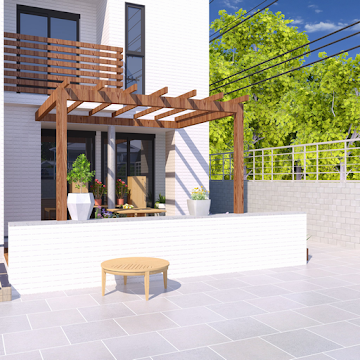 Under a bush, in a bin, the cats away, a magic square, white elephant, a mess on the wall, a loose grill, a laptop with an AD and nothing else, count the missing one. Some key parts, a number of shapes and a box becomes its own clue. Online shopping for the win, a tall thing in a crate and you're in. Or maybe fill your bucket again, take your pole apart and go see if the garbagemen came while you were busy...